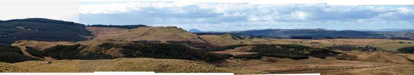 looking due West – the unmistakeable forms of Black Hill of Knockgardner and Green Hill of Knockgardner, and between them, in the blue distance, Ailsa Craig. © Jonathan Meuli : 75mm lens : from from the summit of Bennan Hill : NS 37913 03374: 13th March 2013 : part 5 of 360° panorama