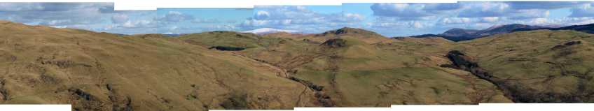looking ESE – Doonan’s hill in foreground centre, with Big Hill of the Baing behind it. Centre distance, the big snow-cap of Cairnsmore of Carsphairn. © Jonathan Meuli : 75mm lens : from from the summit of Bennan Hill : NS 37913 03374: 13th March 2013 : part 2 of 360° panorama